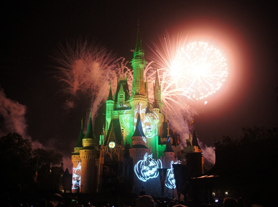 O Happy HalloWishes é a famosa queima de fogos que acontece no tradicional castelo da Cinderela.Foto: Divulgação / Luis Rivera